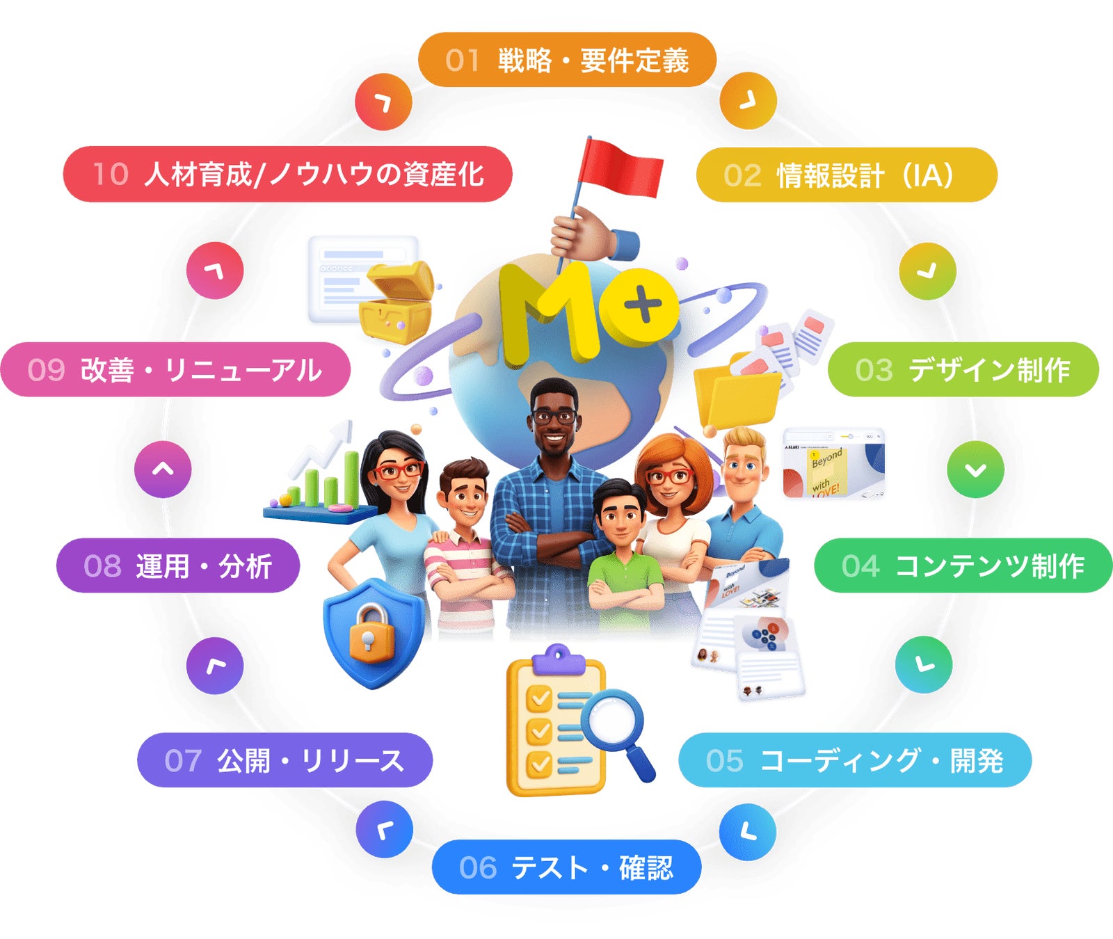 【世界をワクワクさせるクリエイターに憧れて育った『子どもたち』が、「未来」に”夢”と”希望”を抱く「世界」をつくる】の理念実現を目指し、誰もが平等に使える“Webサイト運用支援のインフラ”として、【MONJI+】を提供しています。