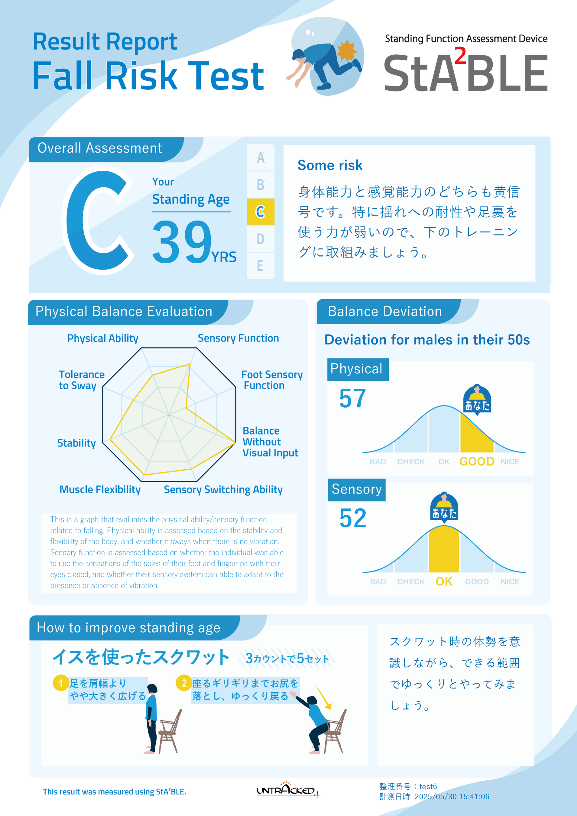 UNTRACKED株式会社は、横浜国立大学発のベンチャー企業であり、最先端技術を活用して転倒リスクを見える化するソリューションを提供しています。主力製品であるStA²BLEを中心に、生体信号解析やAI(人工知能)研究・開発事業を行い、さまざまな社会課題を効率的に解決し、人々の安心・安全な生活や技術開発をトータルにサポートしています。UNTRACKED株式会社は、技術パートナーや投資家、販売パートナー等との連携を拡大し、「転倒ゼロ社会の実現」に向けた事業成長を加速してまいります。
