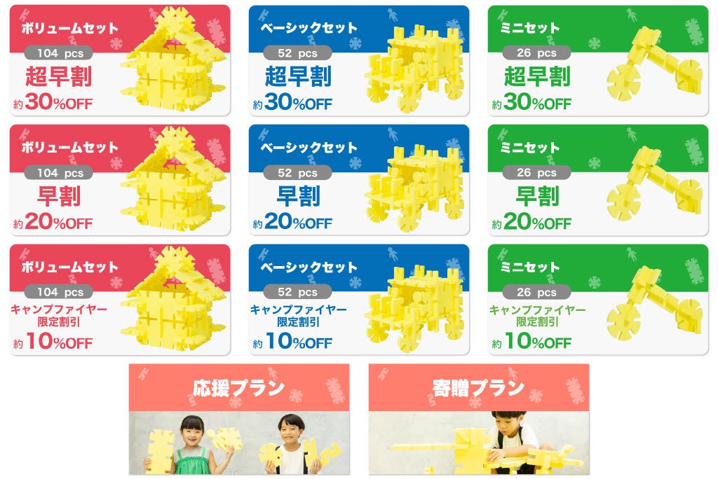 本プロジェクトのリターンとして、ビッグテグミーを割引価格でお求めいただけるプランや、NPO法人子育て応援隊むぎぐみを通して全国の児童施設にビッグテグミーを寄贈するプランをご用意しております。