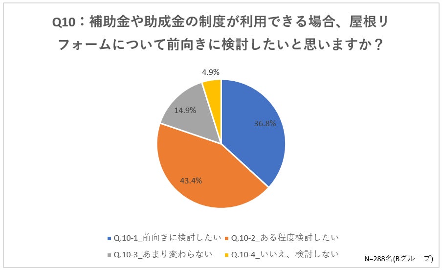 Q10:補助金や助成金の制度が利用できる場合、屋根リフォームについて前向きに検討したいと思いますか?(単一回答)
