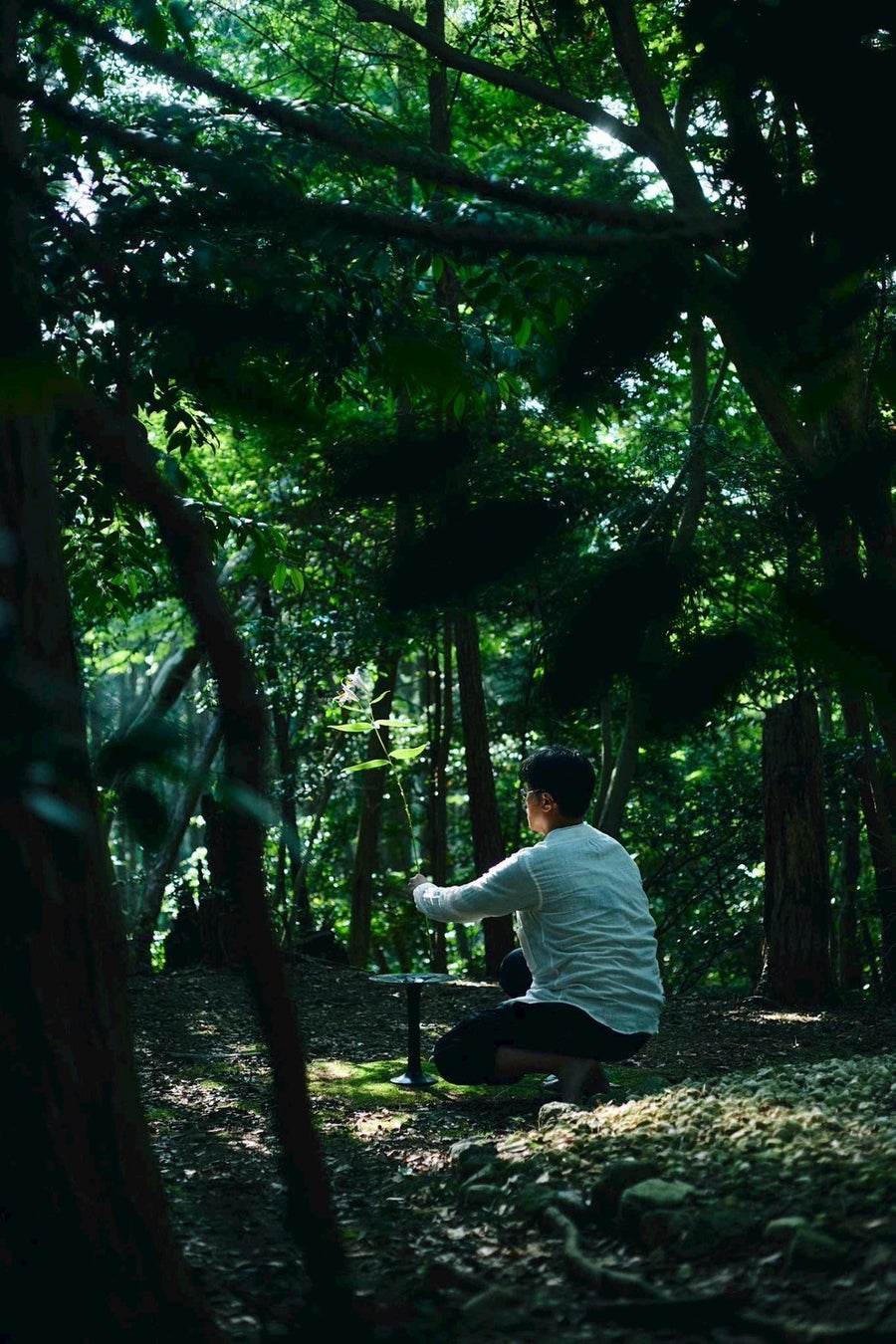 第二部では、来場者は杉と共に大原の山と一体になった庭へと移動し、静寂の中、小川や池、さまざまな生物が響き合う風景を歩みます。そこには近藤高弘の白磁が配され、古典的な花をモチーフとする杉のパフォーマンスが自然と呼応し、来場者は庭園を巡る特別な体験を得ることができます。