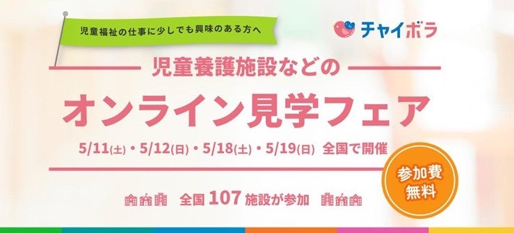 特定非営利活動法人チャイボラ ( 所在 : 東京都豊島区、代表理事 : 大山 遥、以下「 チャイボラ 」) は、児童福祉の仕事に少しでも興味をお持ちの方を対象に、児童養護施設や乳児院、自立援助ホームなどの施設を"見学"できる「 児童養護施設などのオンライン見学フェア 」を開催いたします。