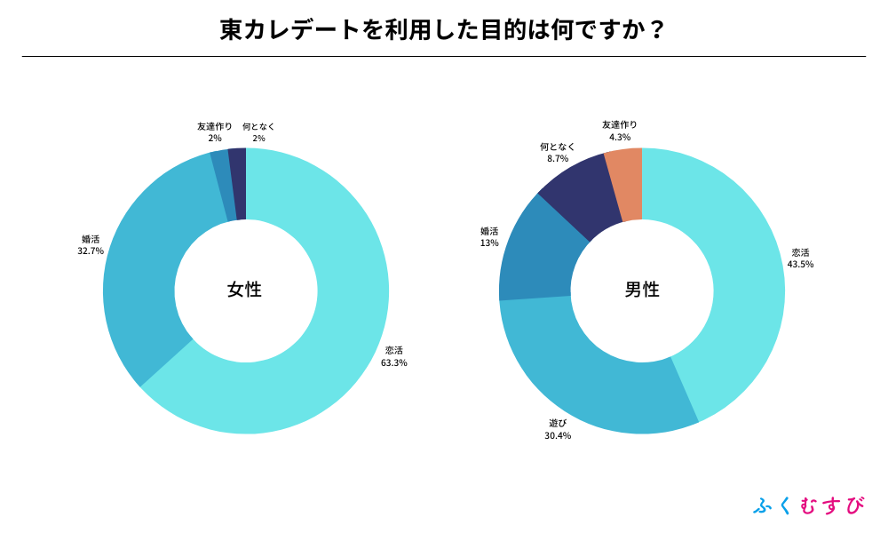 ・女性が東カレデートを利用した目的は、恋活が1位、婚活が2位となりました。