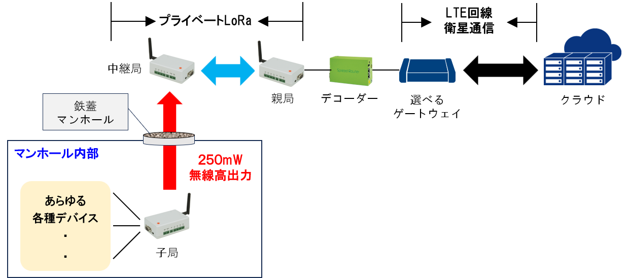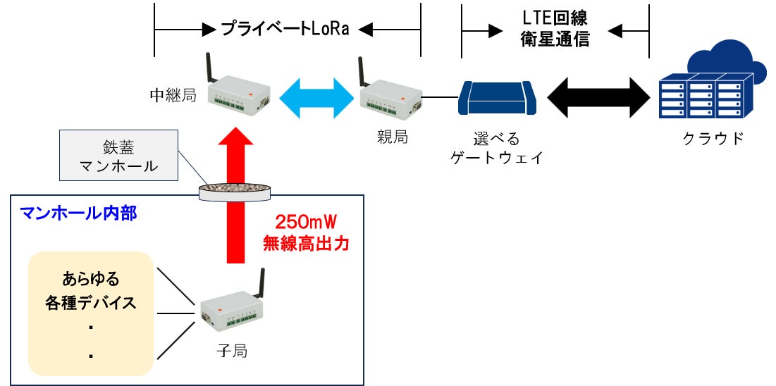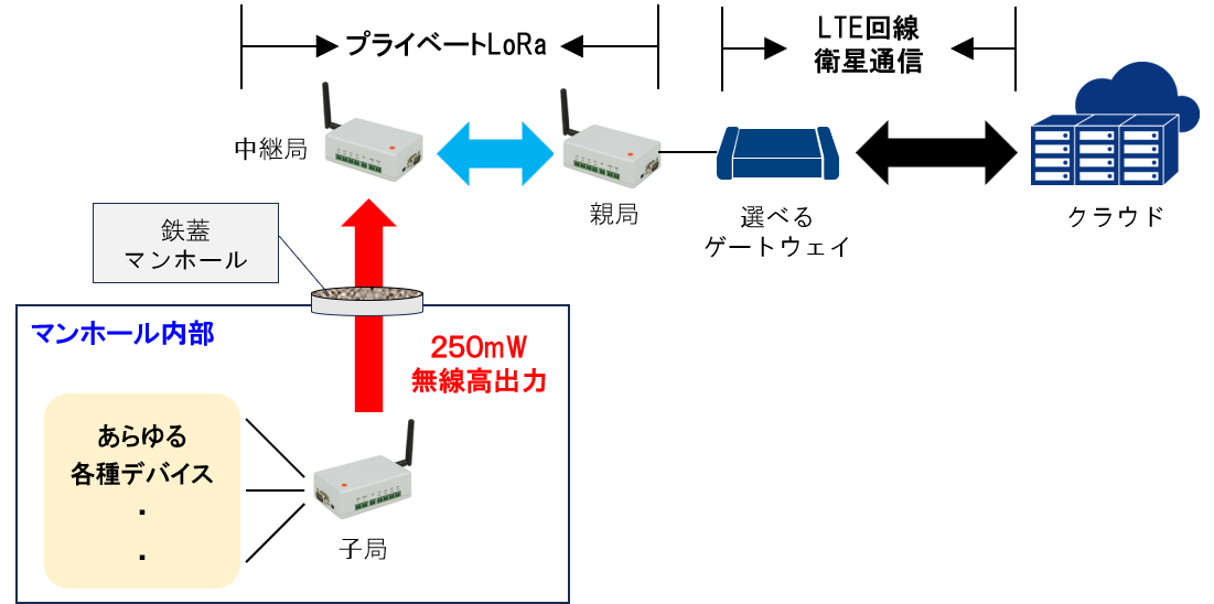 マンホール内部設置されている各種デバイスを“地下から地上まで”データ通信
