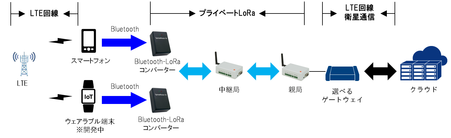 スマートフォン・ウェアラブル端末もプライベートLoRaネットワークを利用して位置情報とチャット機能でコミュニケーションを図る