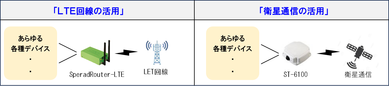 現場の通信環境に適した各種ゲートウェイ(LTEルータ、衛星通信)をご用意