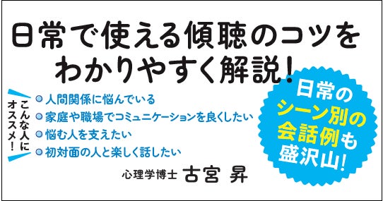 心理学博士・古宮 昇が、日常で使える「傾聴」をわかりやすく解説!『プロカウンセラーがやさしく教える 人間関係に役立つ傾聴』11月11日発売!