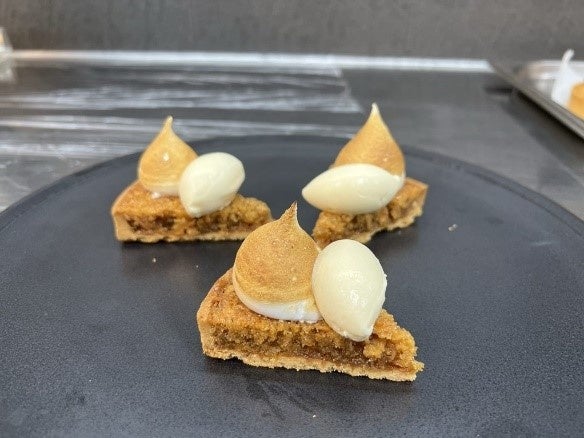 今回は地中海料理のソースに液体塩こうじを使用しました。とてもバランスのよい、コクのある味わいを楽しんでいただけたかと思います。また、本日のメインテーマであったデザートでも、ミルク、クリーム、はちみつに少しだけ液体塩こうじを加えることで、まったく「異次元の深い甘味」を創造することに成功しました。
