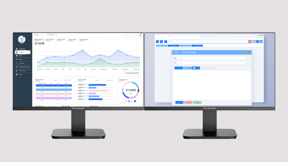 照明の映り込みを防ぐ「ノングレアパネル」を採用し、「ブルーライトフィルター」やちらつきを取り除く「フリッカーフリー」を搭載することにより、長時間のデスクワークでも目に優しく疲れを軽減します。下5°~上20°のチルト対応で、使用環境や姿勢に合わせて見やすい角度に調整が可能。さらに、VESA規格(75mm×75mm)に対応したモニターアームを取り付けることで高さの調整も可能となり、お客様のビジネスワークを快適にサポートします。今回、FUNAIブランド製品として、昨年より展開しているゲーミングモニターに加え、オフィス向けモニターを追加いたしました。今後も、国内メーカーFUNAIはお客様のニーズに応じた商品を提案していきます。