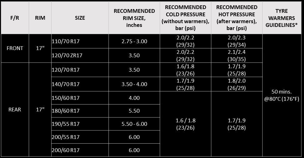 ◆推奨空気圧とタイヤウォーマーの設定