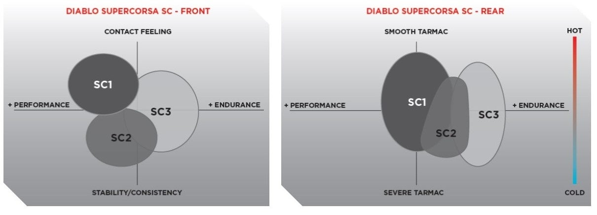 ⚫DIABLO™ SUPERCORSA V4 SCは、フロントサイズとリアサイズで異なるコンパウンドを選択することができます。