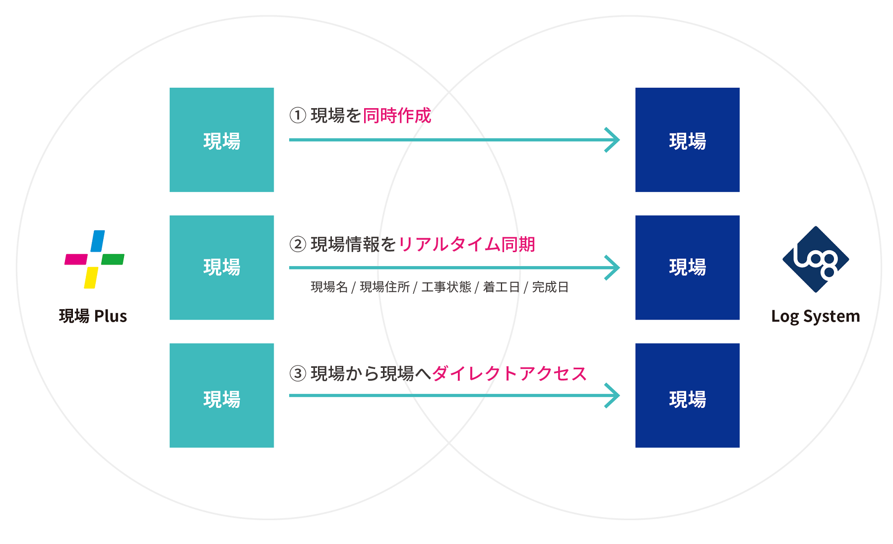 「現場Plus」と「Log System」の現場情報をリアルタイムに同期