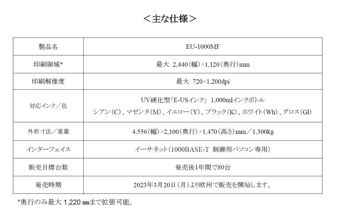 大判UV-LEDフラットベッドプリンターを欧州市場に投入し新たな需要を喚起 EU-1000MF発表
