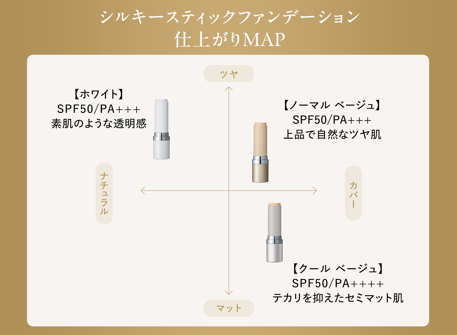 「クール ベージュ」「ノーマル ベージュ」「ホワイト」の3タイプがあり、なりたい仕上がりによって使い分けも可能です。季節のお肌の状態に合わせてご使用ください。