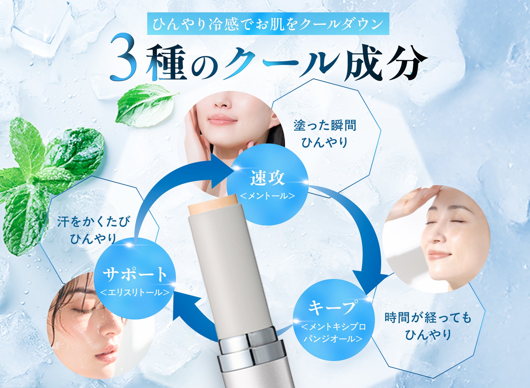 つけた瞬間から清涼感が広がり、メイク中もひんやり感が持続します。お肌をクールダウンし、皮脂の分泌を抑制するので、メイクを崩れにくくします。