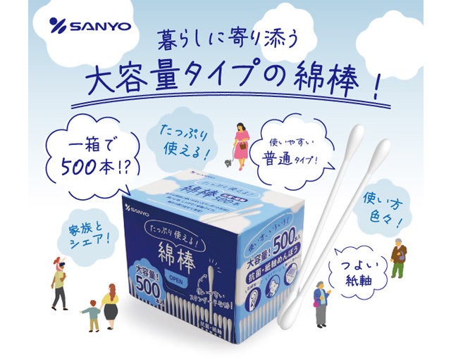 綿棒一筋59年、国内トップシェアを誇る株式会社山洋(本社:大阪府富田林市、代表取締役:日比 努)は、中東情勢の緊迫化に伴うナフサ不足、およびプラスチック原料の急激な価格高騰と供給制限を受け、主力である「プラスチック製丸筒容器」に代わる「紙容器」製品の強化に注力している。今年その第一弾として、人気の丸筒2個セット(400本)を上回る大容量を実現した「抗菌綿棒 500本紙箱」を2026年4月より発売いたします