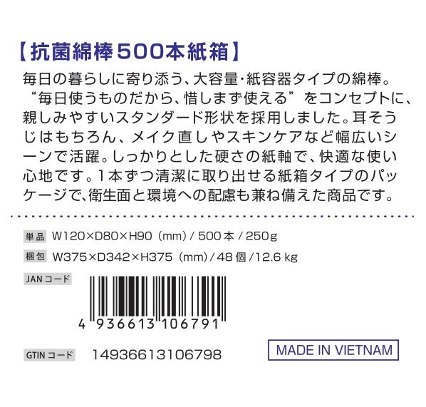 【綿棒がピンチ!】中東情勢の影響で丸筒プラ容器の製造が困難に。業界初「丸筒入り綿棒」を開発した㈱山洋が、環境配慮型「抗菌綿棒 500本紙箱」を4月に発売!「丸筒」から「紙箱」へ