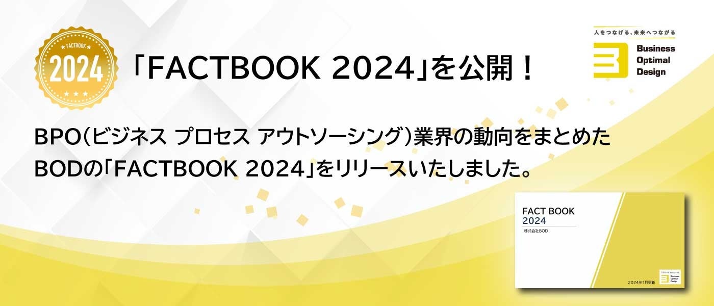 BPO(ビジネス プロセス アウトソーシング)業界をリードするBODは、1月23日に創立7周年を迎えました。これもひとえに皆様よりご支援を賜りましたおかげと深く感謝申し上げます。周年を記念し、日本国内と世界のBPO業界について、それぞれのBPO需要が高まっている背景をまとめた「FACTBOOK2024」を公開いたしました。