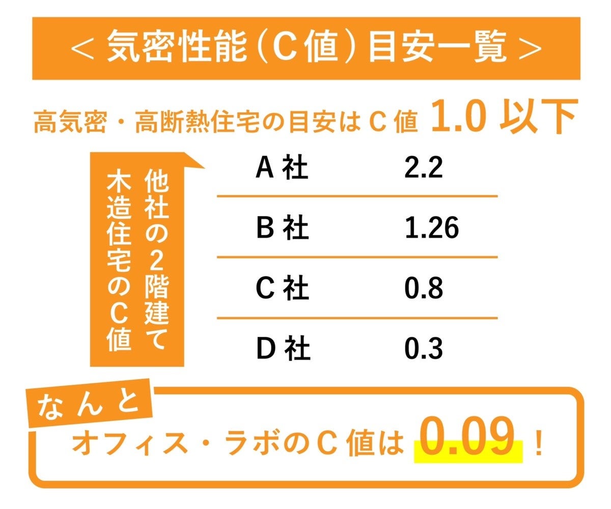 ●C値:0.09 国が定める基準はないが一般的に高気密と評価される「C値1.0」を大幅に上回る高性能