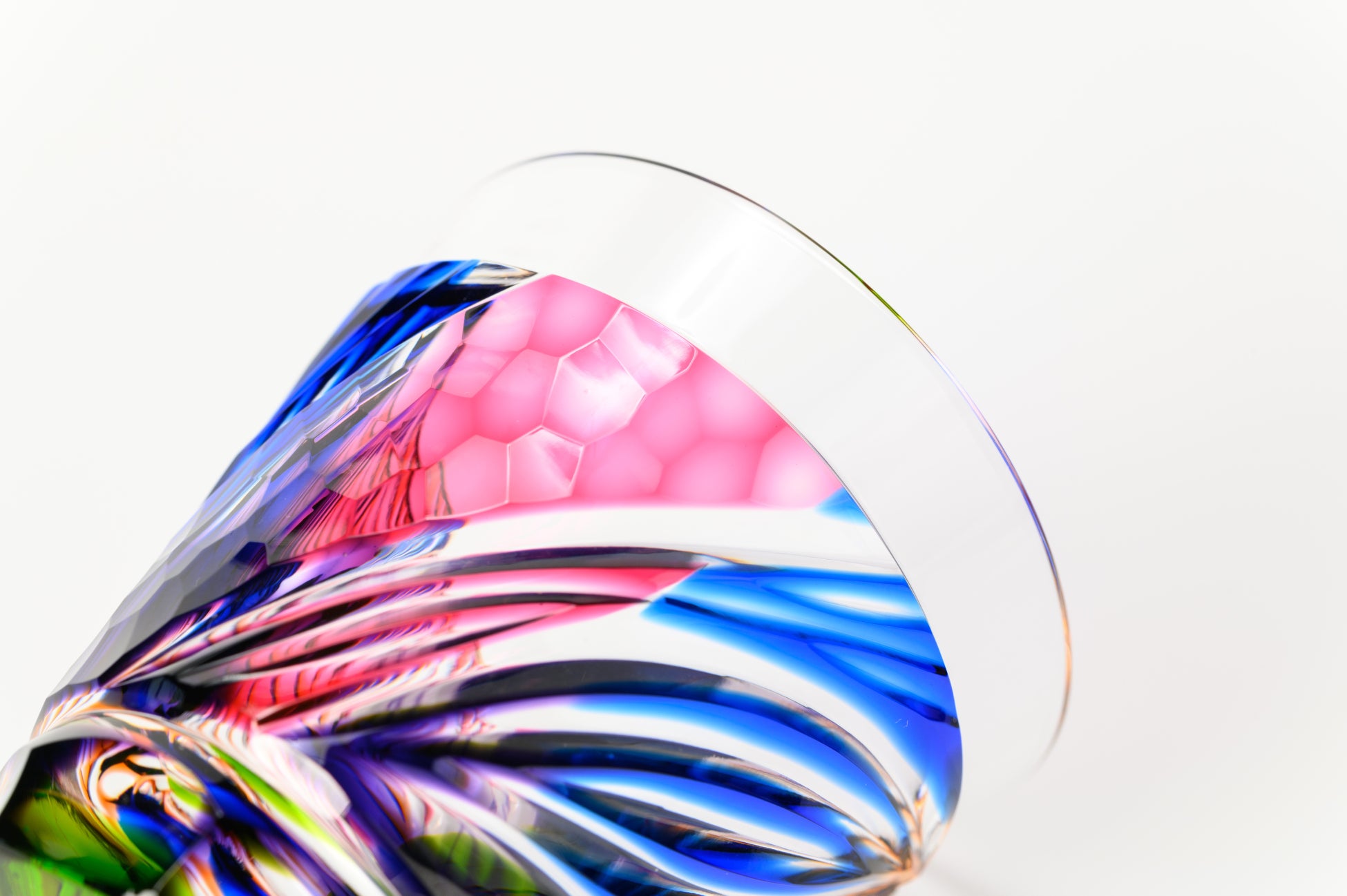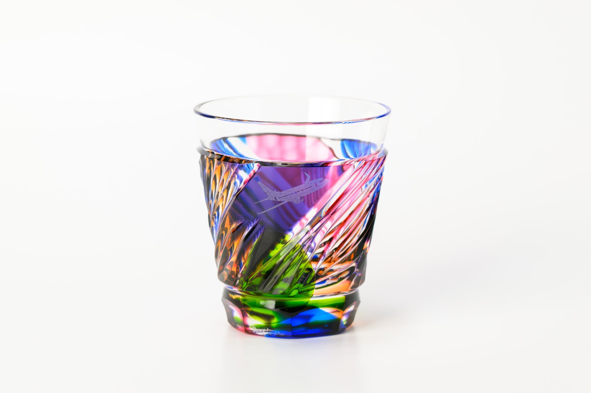 カラーは様々な色を合わせたガラス工房弟子丸のオリジナルカラーで、見る角度によって様々な色に見える、まるでオーロラのような幻想的なグラスとなっている。グラスの表面には、オーロラや飛行機、飛行機雲などを薩摩切子伝統の技「カット(切子)」などで表現。