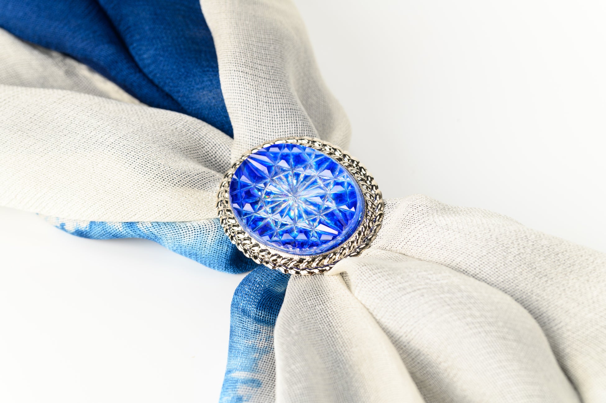 主に国際線に乗務しているCAが、そこで世界中の人とつながる魅力を感じ、このスカーフリングがきっかけになって、たくさんの人とつながってほしいという願いが込められている。カラーは空をイメージした「ブルー」。 (※スカーフは返礼品に含みません)