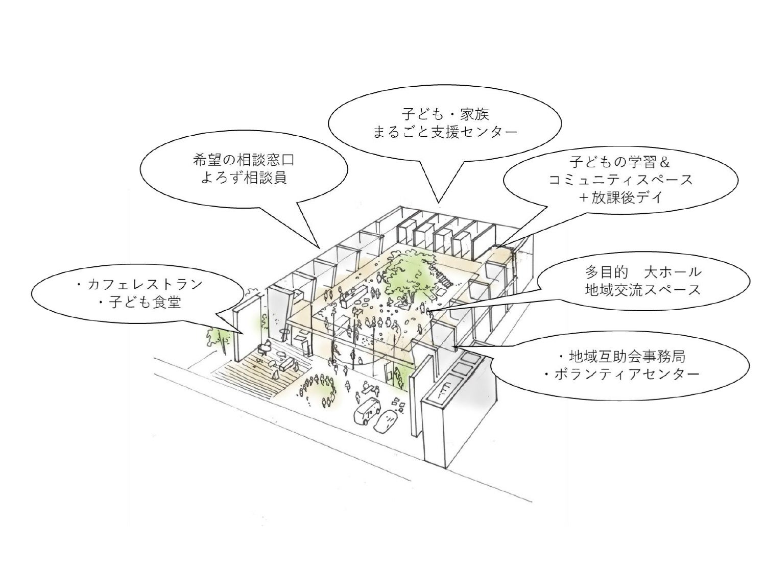 ここには、子どもとその家族の支援センターやよろず相談窓口も設置される予定になっています。