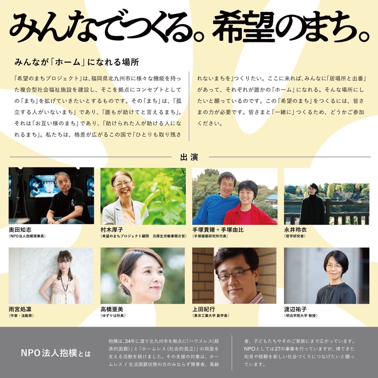 また、このふるさと納税のキャンペーンに合わせて、NPO法人抱樸は東京で希望のまちプロジェクトについての進捗報告イベントを開催いたします。