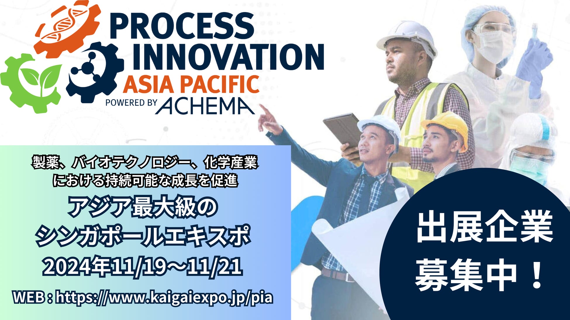 2024年11月19日から21日まで、シンガポールで開催されるこのイベントは、アジア太平洋地域のプロセス技術に関わる企業にとって重要な場です。Process Innovation Asia-Pacific (PIA)は、化学・石油化学、製薬・バイオテクノロジーなど、複数の業界を対象とした大規模なイベントであり、3日間にわたって業界をリードする技術やソリューションが紹介されます。