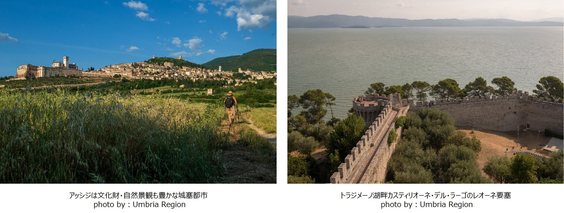聖フランチェスコの街アッシジは実は城塞都市。そして湖のほとりにあるマルタ騎士団の城(現在はワイナリーが所有)など、中世の香りを色濃く残す数多くの城塞都市が残るウンブリア州。世界的な音楽イベントや美しい自然と伝統料理、様々な体験をぜひお楽しみください。