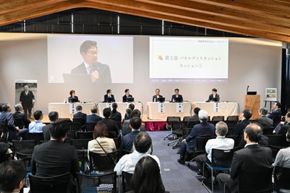 シンポジウムの様子 登壇する当社取締役社長 大隅毅
