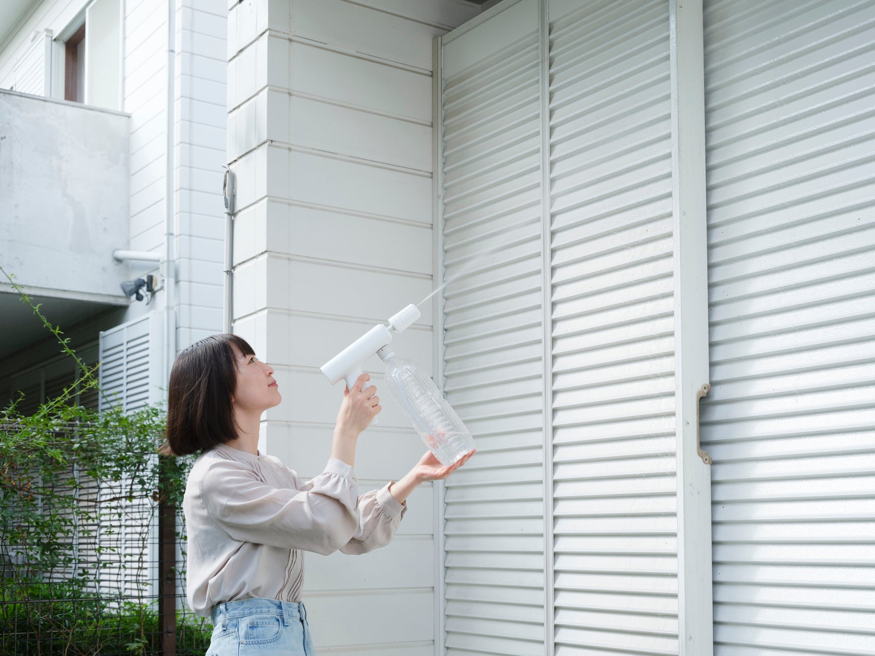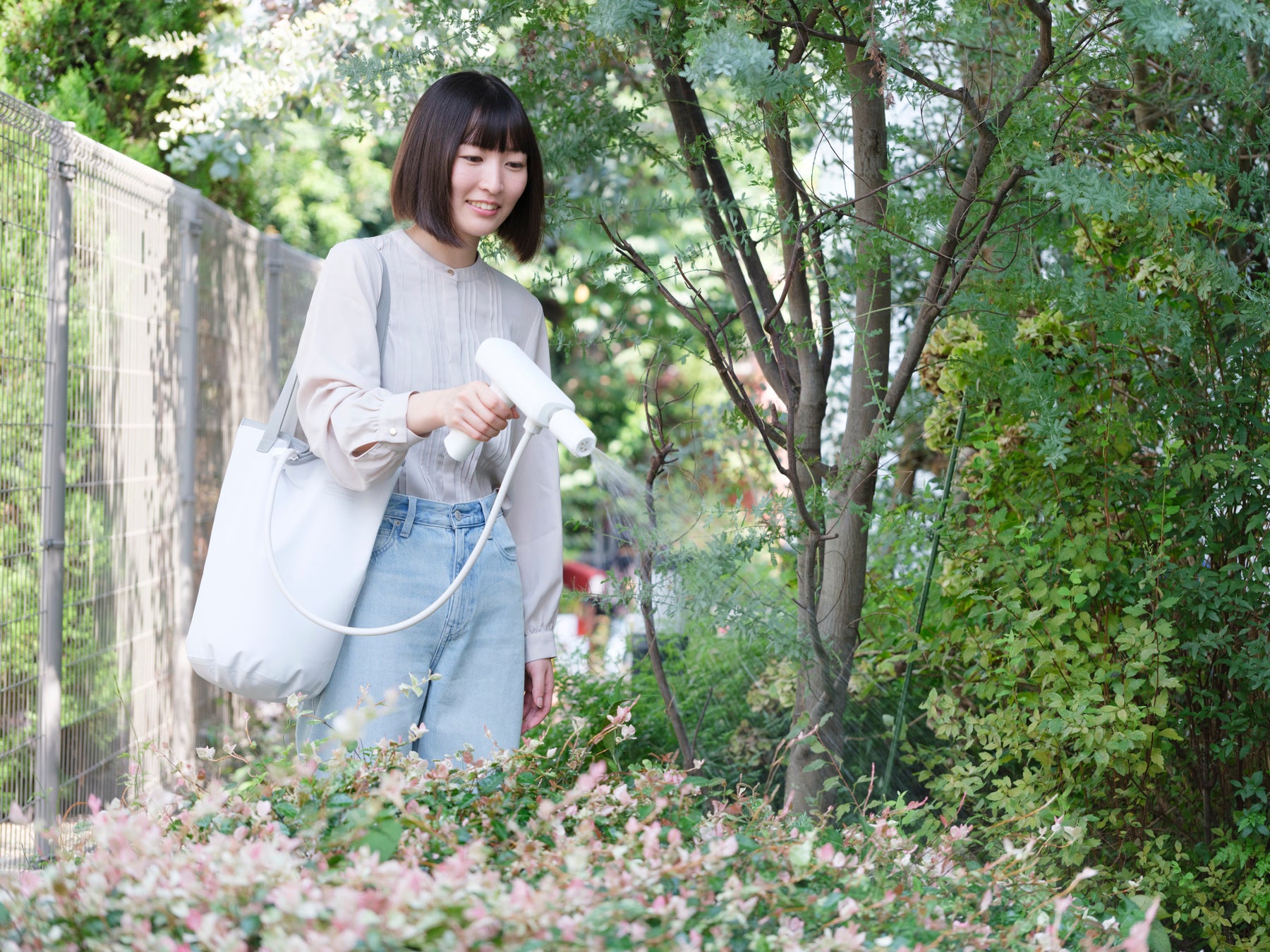 さらにペットボトルやウォーターバッグも使えるため、自宅の庭はもちろん、キャンプに、海に、お墓参りに…水栓レスのため水道が近くにない場所へも持ち運んで使うことが可能です!充電式で面倒なセッティングもないため、家庭用掃除機のようにボタンひとつで手軽に扱えます。