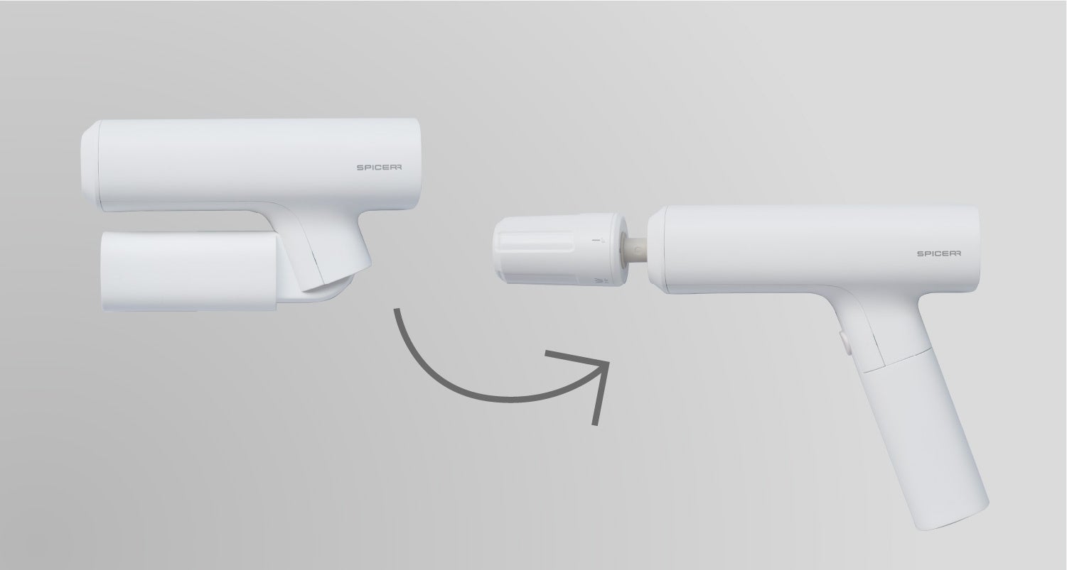 今回登場するSPICERR 「ポケッタブル高圧洗浄機 PHP-1」のボディカラーは、落ち着いた雰囲気のマットホワイト。よりインテリアに溶け込み、普段使う白物家電と同じように使いたい時にサッと取り出して使えます。