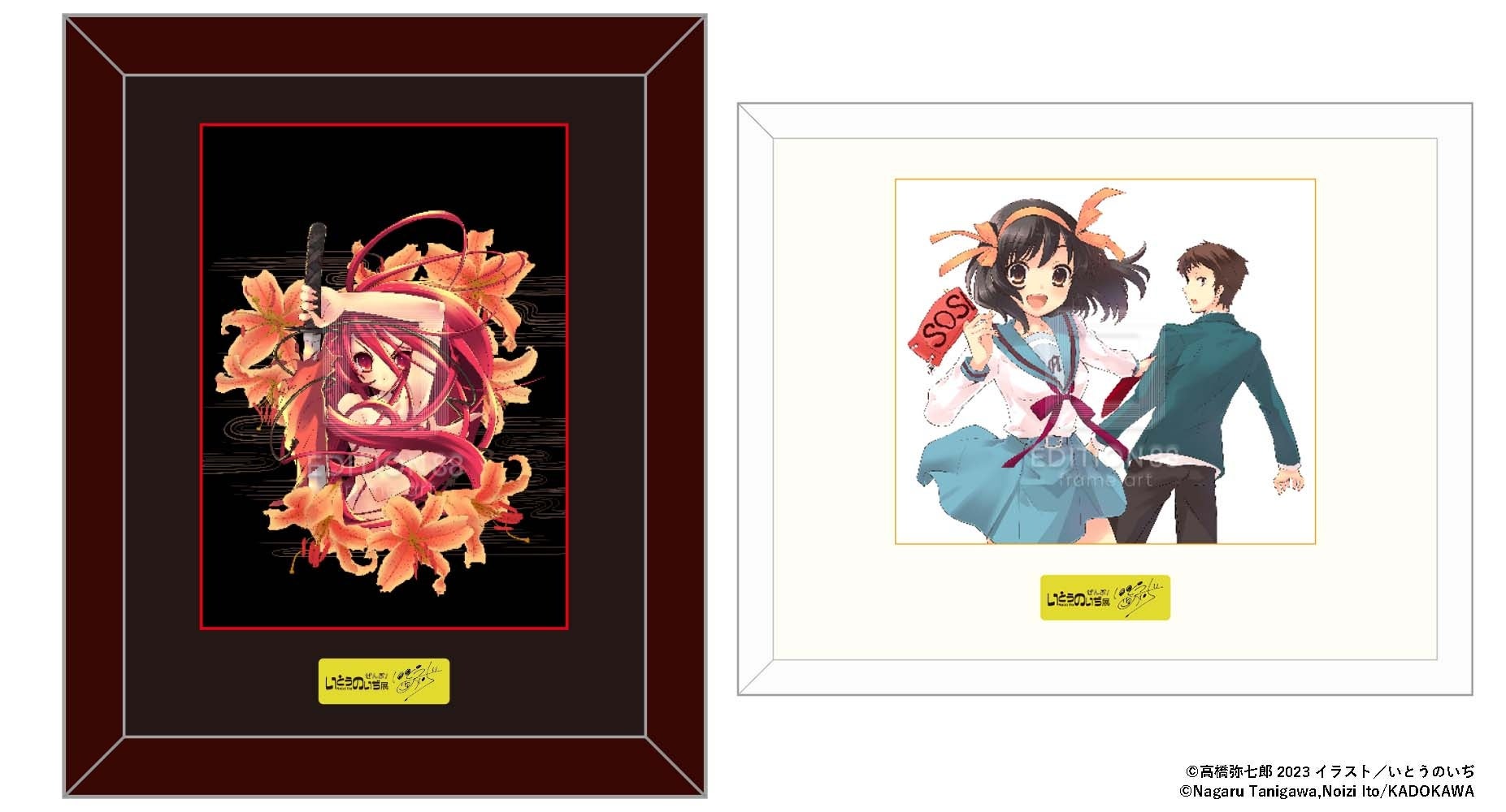 ゴールドのパネルにいとうのいぢ先生の複製サインが入った額装商品です。
