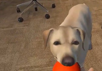 VRゴーグルを装着しながら、ペットだけでなく周囲の人や物も見ることができるので、セラピー中の安全性にも配慮しています。