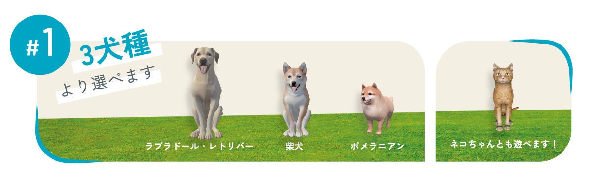 2.ワンちゃんは3犬種より選択可能、ネコちゃんとも遊べます