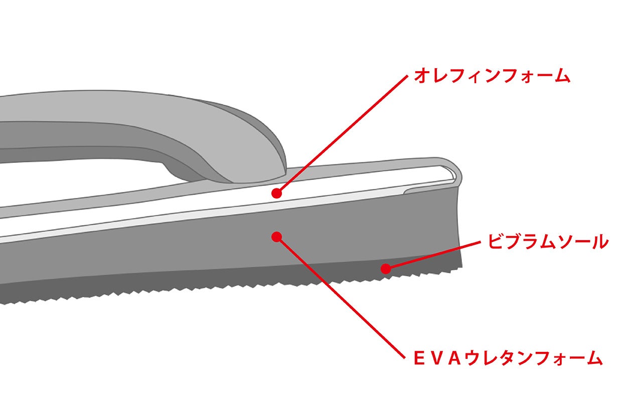 さらに中間材としてEVAウレタンフォームを挟むことにより、しっかり感とクッション性を両立しています。