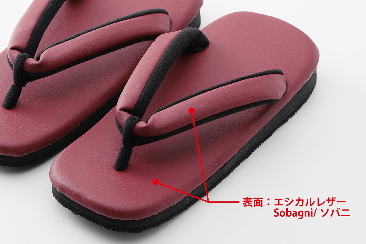 「KUON-久遠-」の表面及び花緒(表地)にはエシカルレザーを使用しています。