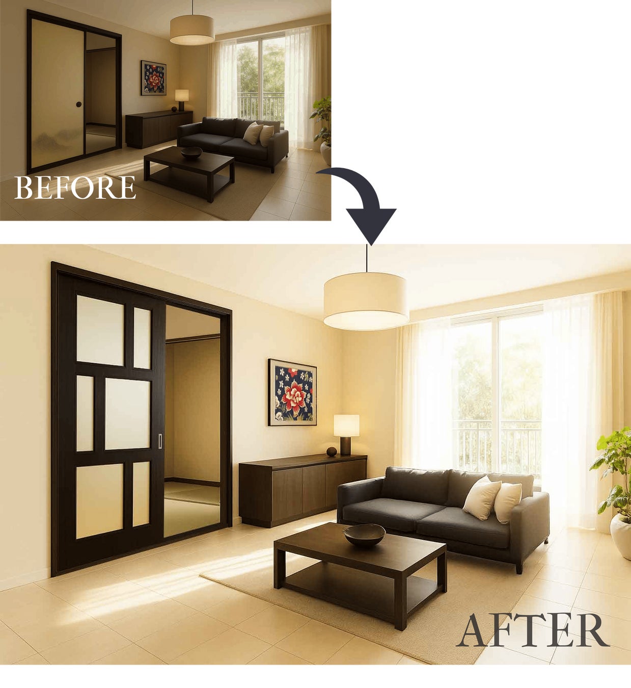 DIYでも導入しやすい構造と、空間を上質に見せるデザインで、中古住宅や賃貸物件の“第一印象”を一枚のドアから変えます。