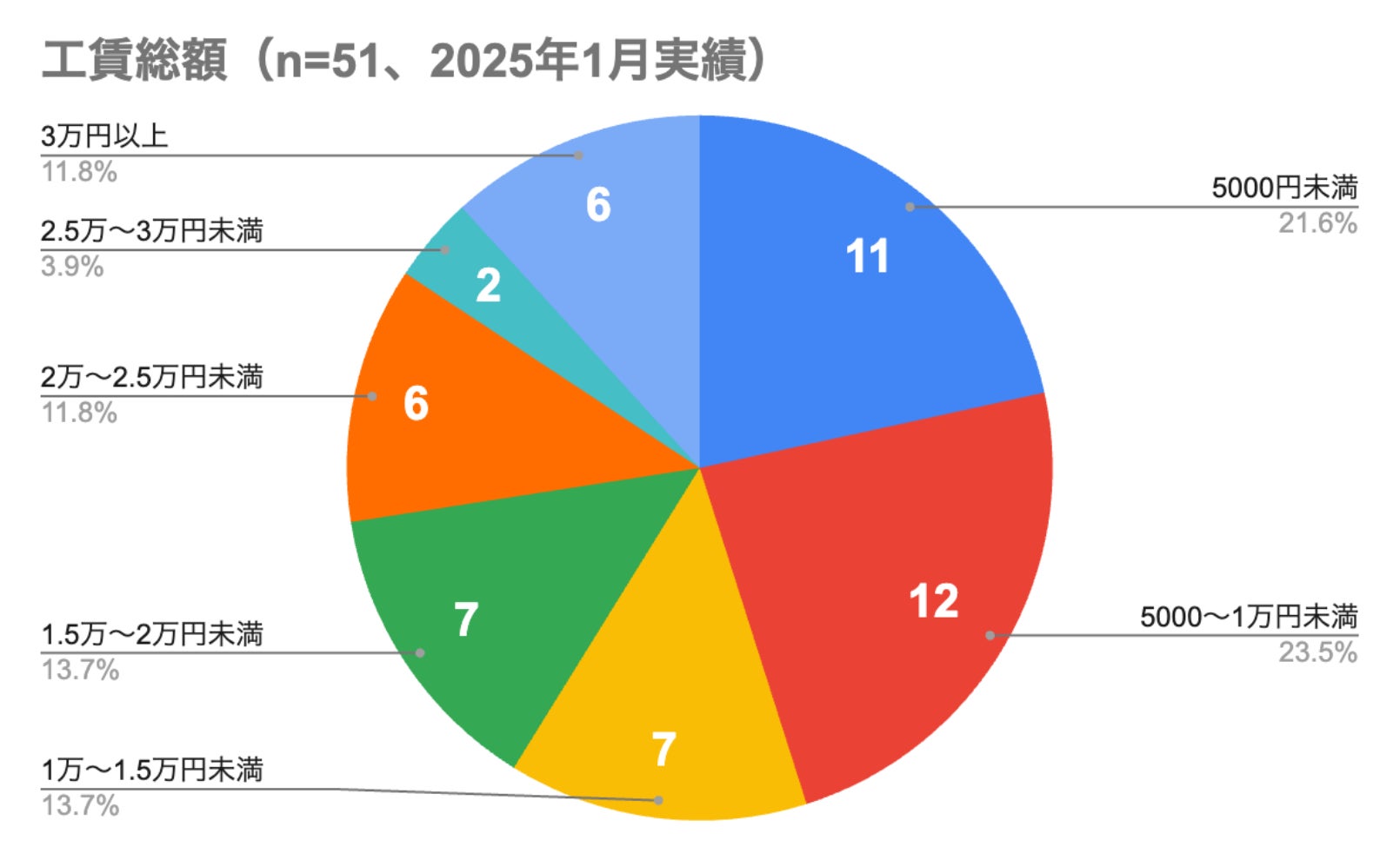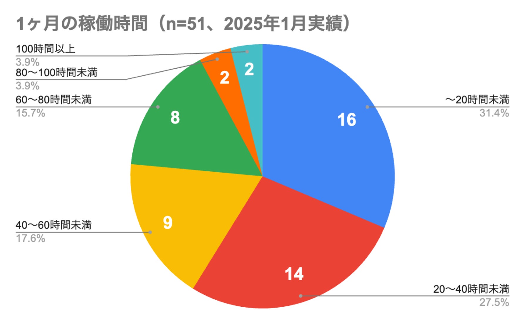 2025年1月の工賃支給対象者数は51名で、平均月間稼働時間は「38時間21分3秒」でした。