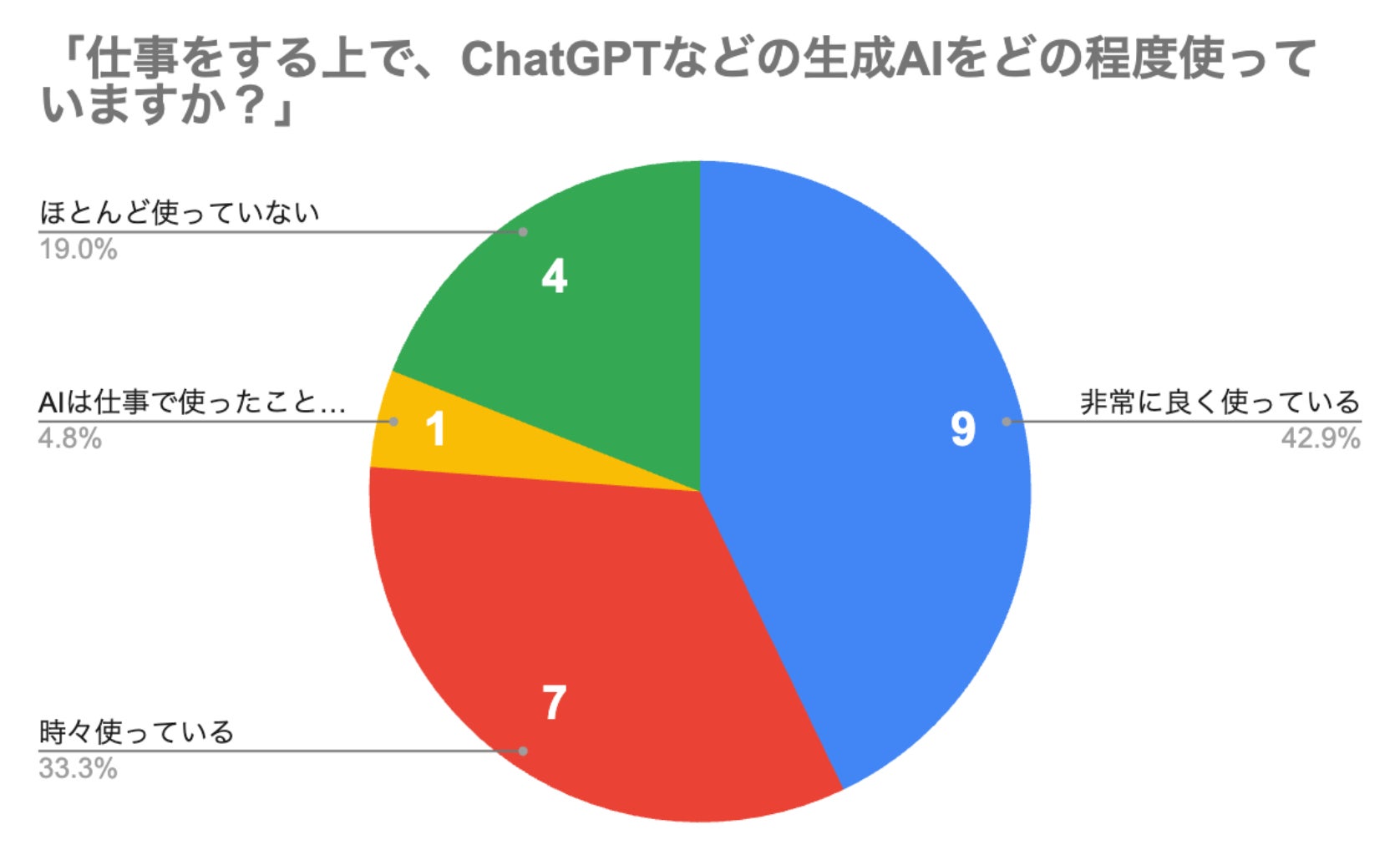 「チャットGPTを使用することによって業務の効率性が上がったり自分の苦手なことを補えたりした。」(20代女性)