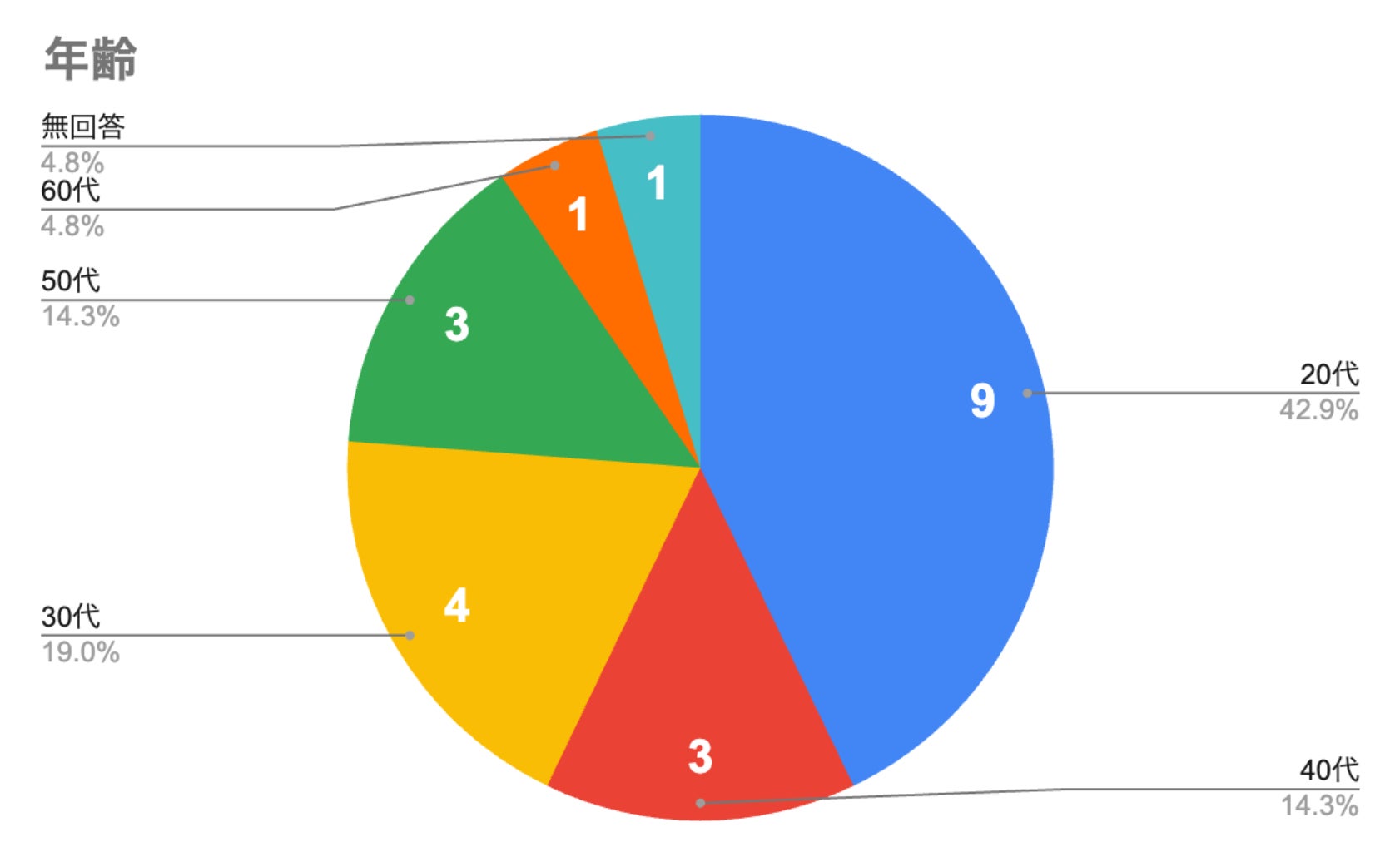 回答数:21名(男性10名、女性9名、性別は回答しない2名)