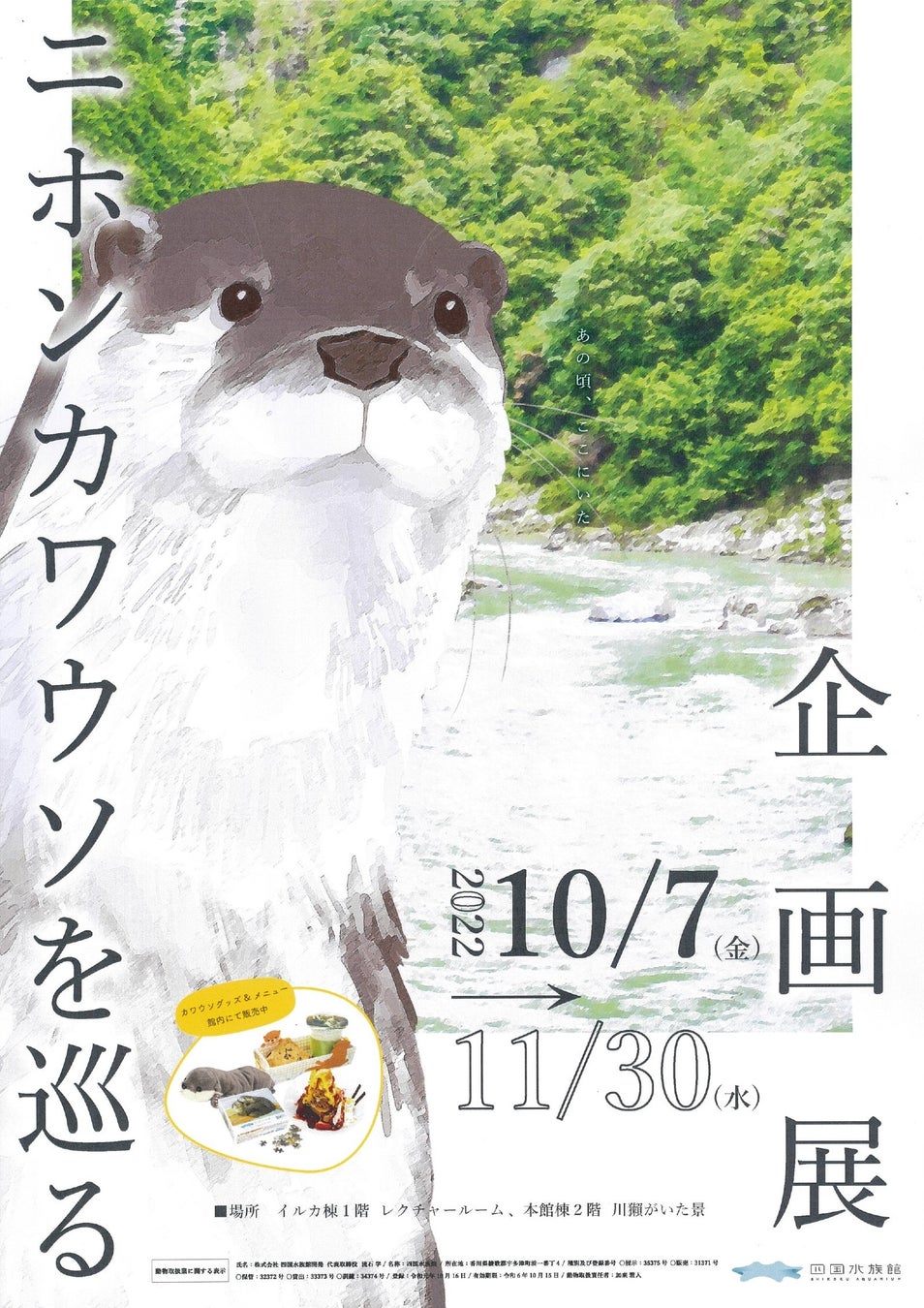 四国水族館(所在地:香川県)では、2022年10月7日(金)~11月30日(水)の期間、四国水族館初となるカワウソをテーマにした企画展「ニホンカワウソを巡る」を開催します。