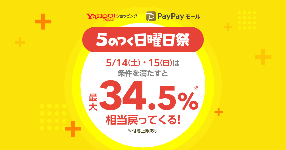 Yahoo!ショッピングとPayPayモール、最大34.5%相当が戻ってくる「5のつく日曜日祭」を5月14~15日に開催
