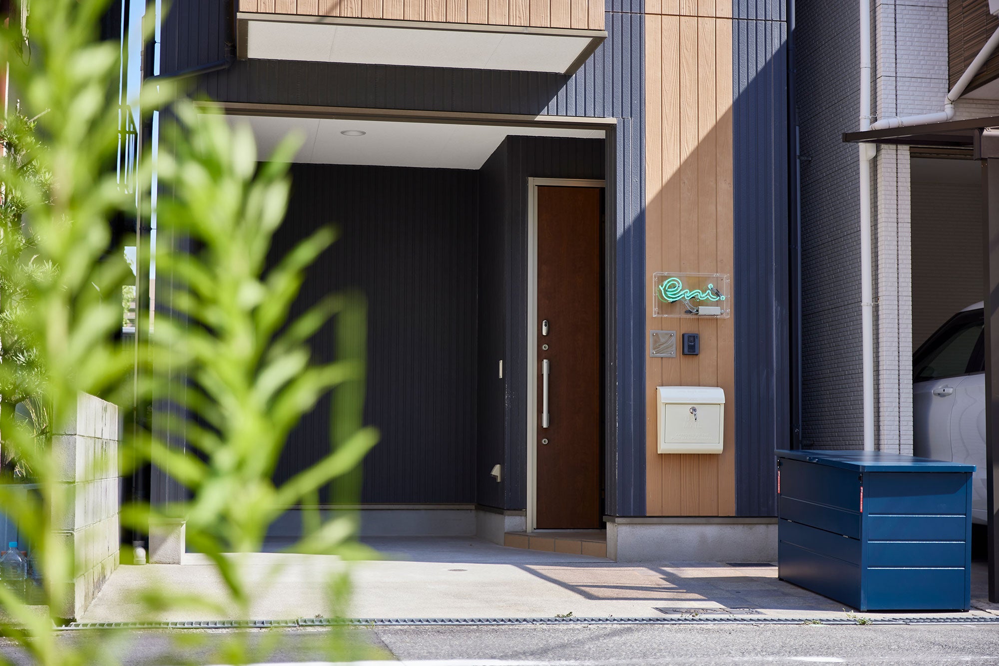 eni.konohanaは、最大12名まで宿泊できる駐車場付き3階建ての貸切一軒家です。お車でお越しのお客様には、乗用車1台分の駐車スペースをご用意しています。