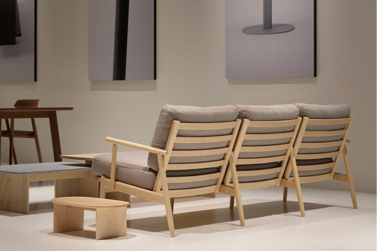 デザイナーの深澤直人氏によるアップデートした「HIROSHIMA」のモジュールソファや新作のオープンシェルフ、セシリエ・マンツ氏のソファやチェアなど多様な家具との組み合わせを楽しめる新作テーブルコレクション「SHOTO」は、よりバリエーション豊かに展開いたします。ジャスパー・モリソン氏による「Lightwood」の新作ソファも発表いたします。