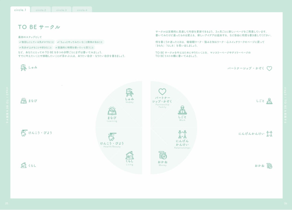 3.「やりたい」を8つのジャンル別に書く『TO BE サークル』