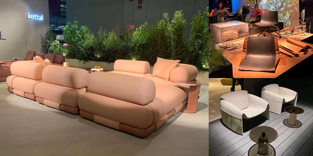 インテリアの構成要素となる、色・素材・仕上げ・パターン(CMFP=Color / Material / Finish / Pattern)については、持続可能な素材と自然の風合いを活かしたデザインが目立っていました。