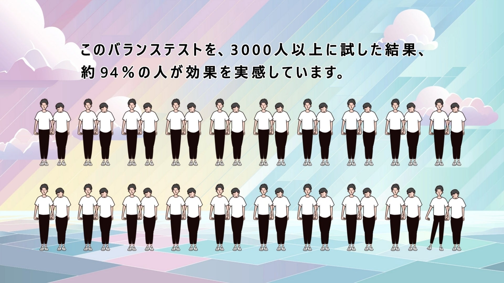 このバランステストは、非常にシンプルで、誰でも簡単に、いつでも行うことができます。一方で、しっかり技術を体感していただくには、いくつか重要なポイントもあり、これらを端的にわかりやすくまとめた動画の必要性を感じ、今回はフルアニメーションで動画制作することになりました。