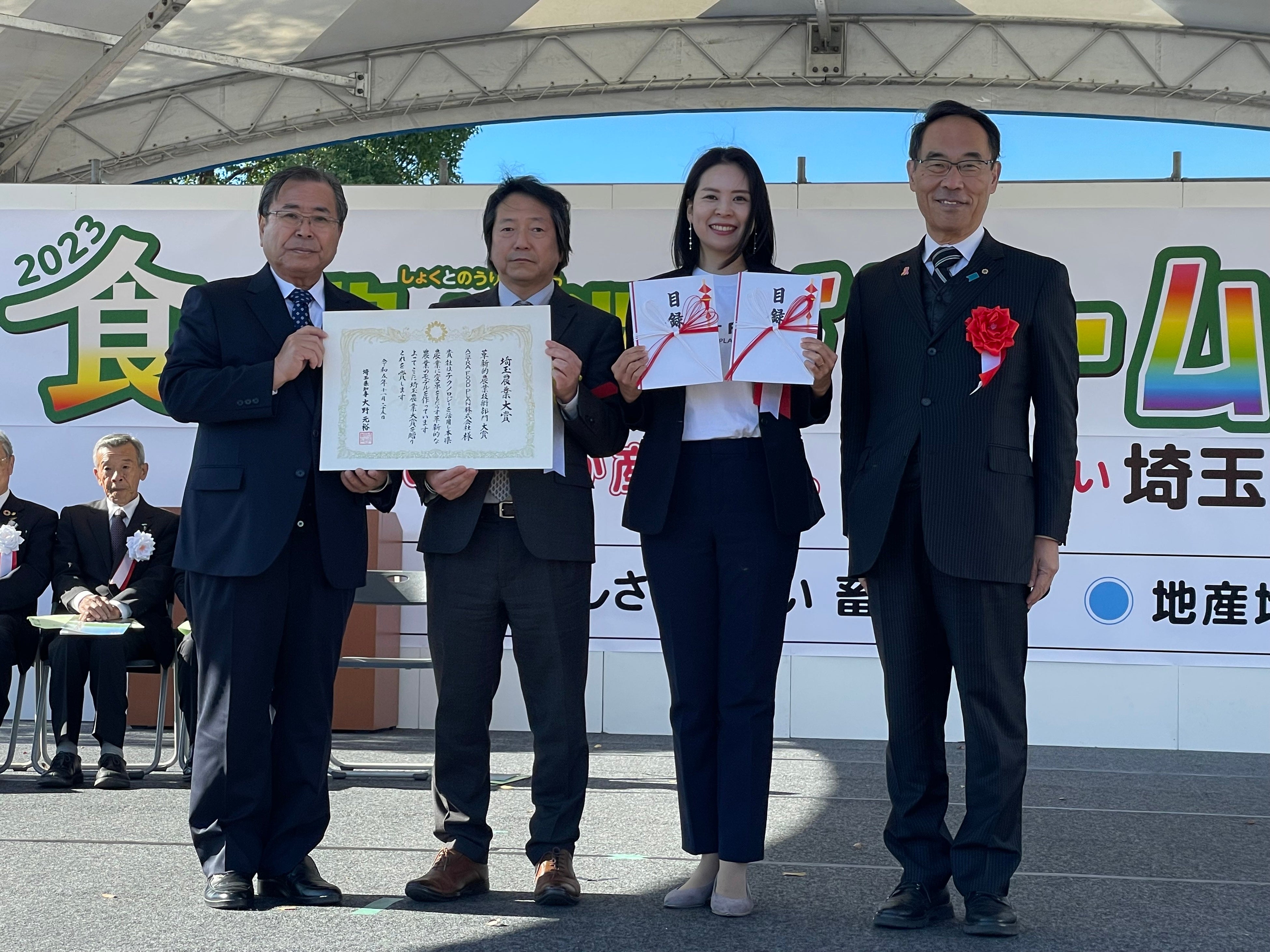 2023年11 月 25 日(土)に開催された「2023彩の国食と農林業ドリームフェスタ」 の開催記念式典にて表彰式が執り行われ、大野元裕埼玉県知事から表彰状を授与されました。