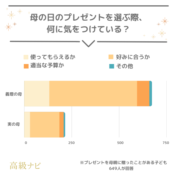 先述の子どもへの質問で、母の日のプレゼント選びで最も気にするのは「母の好みに合っているかどうか」という結果がありました。